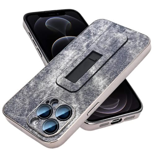 Funda para Teléfono iPhone 12 Pro con Soporte Push-Pull Galvanizado y Patrón de Mezclilla (Gris Azul)