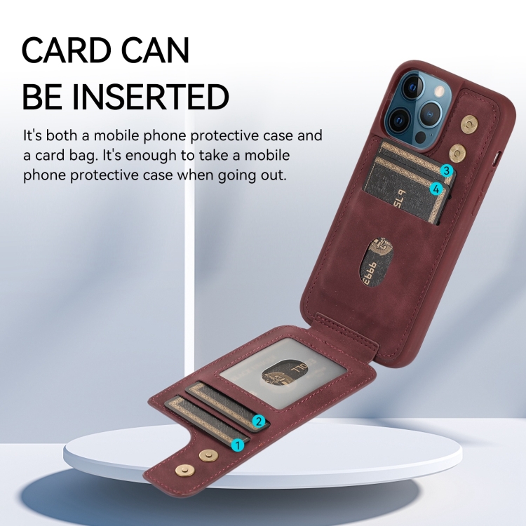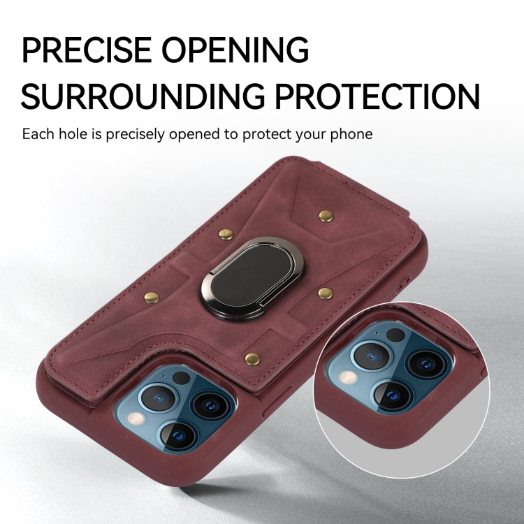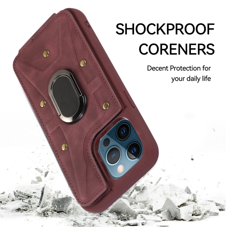 Funda Trasera Armor Ring Wallet para iPhone 12 Pro Max (Rojo Vino)