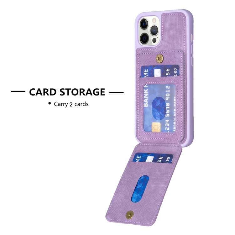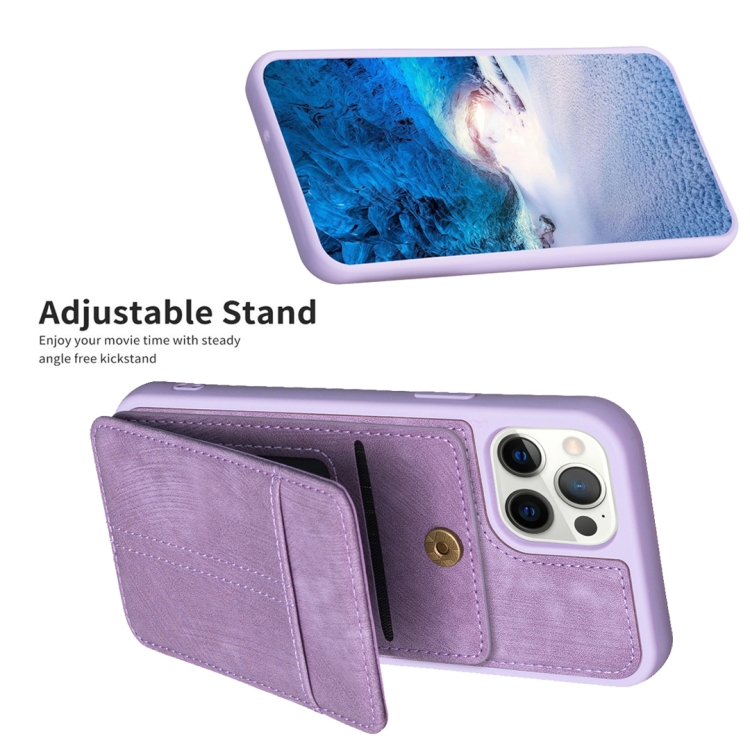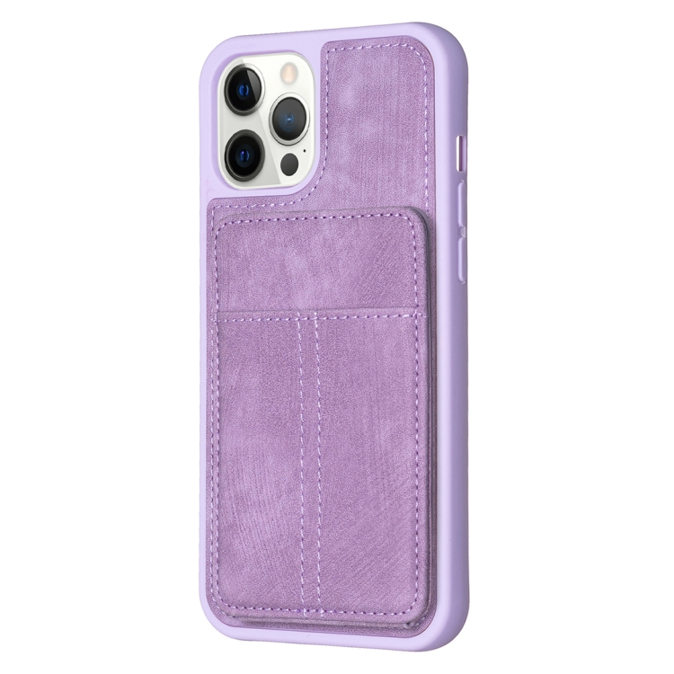 Estuche para Teléfono Bf28 para iPhone 12 Pro Max con Bolsa para Tarjeta y Soporte (Púrpura)