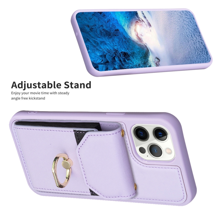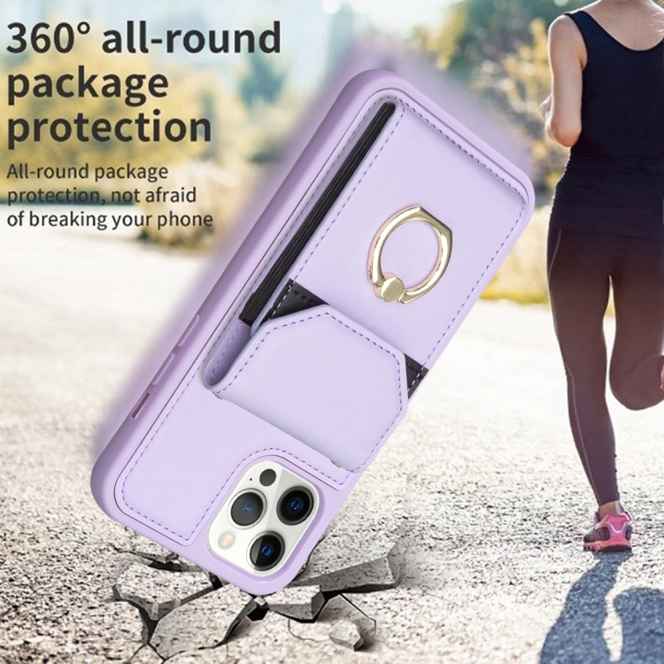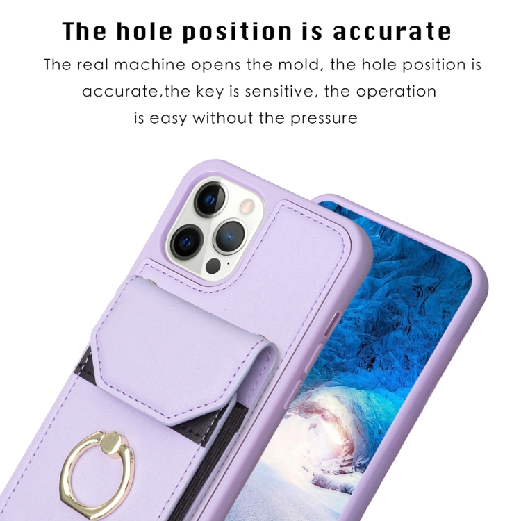 Funda para teléfono Bf29 para iPhone 12 Pro Max con soporte para anillo y bolsa para tarjeta de órgano (Púrpura)
