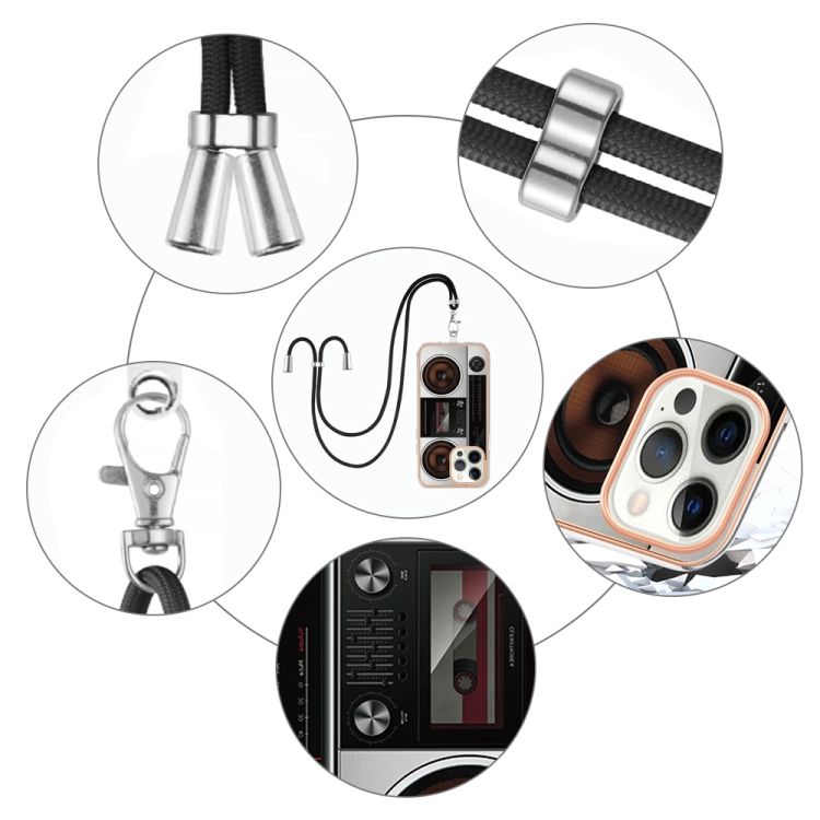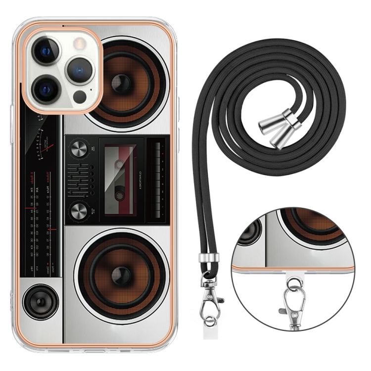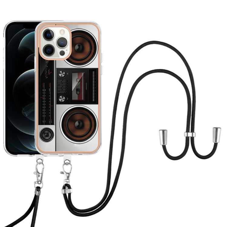 Estuche para Teléfono iPhone 12 Pro Max Imd de Doble Cara con Galvanoplastia y Cordón (Radio Retro)