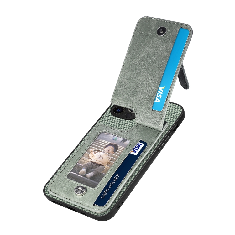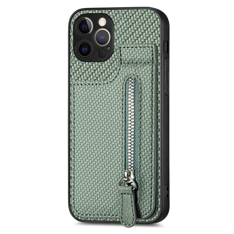 Funda de Teléfono para iPhone 12 Pro Max con Cremallera Vertical de Fibra de Carbono (Verde)