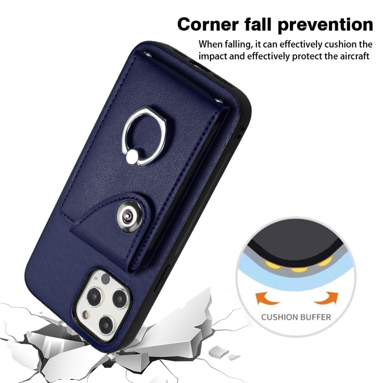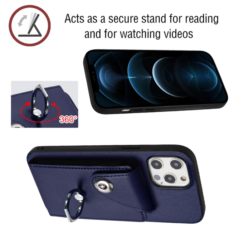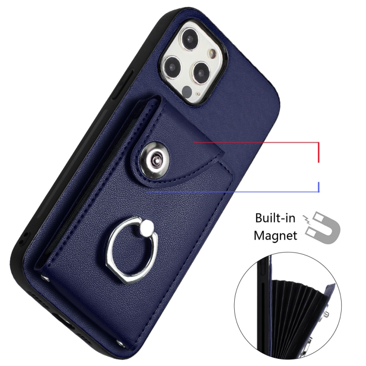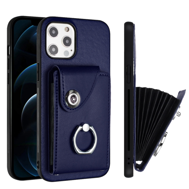 Funda para Teléfono iPhone 12 Pro Max con Soporte para Anillo y Bolsa para Tarjeta de Órgano (Azul)
