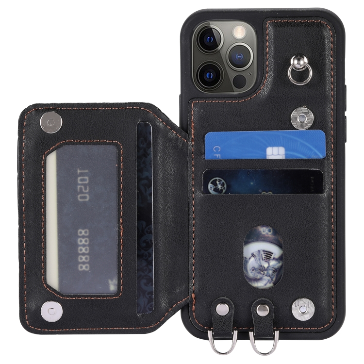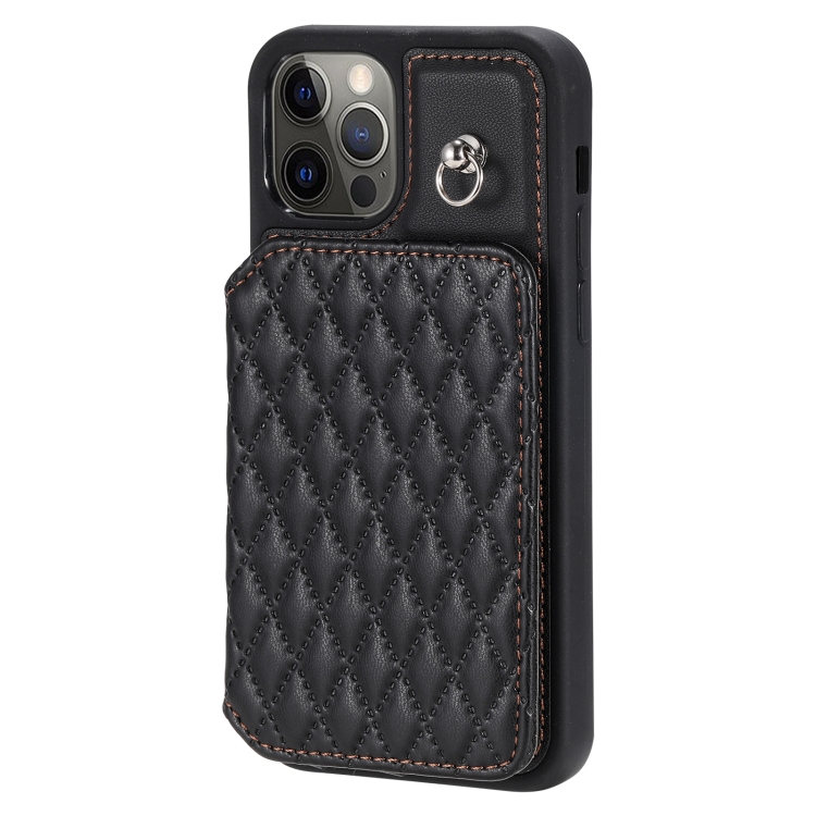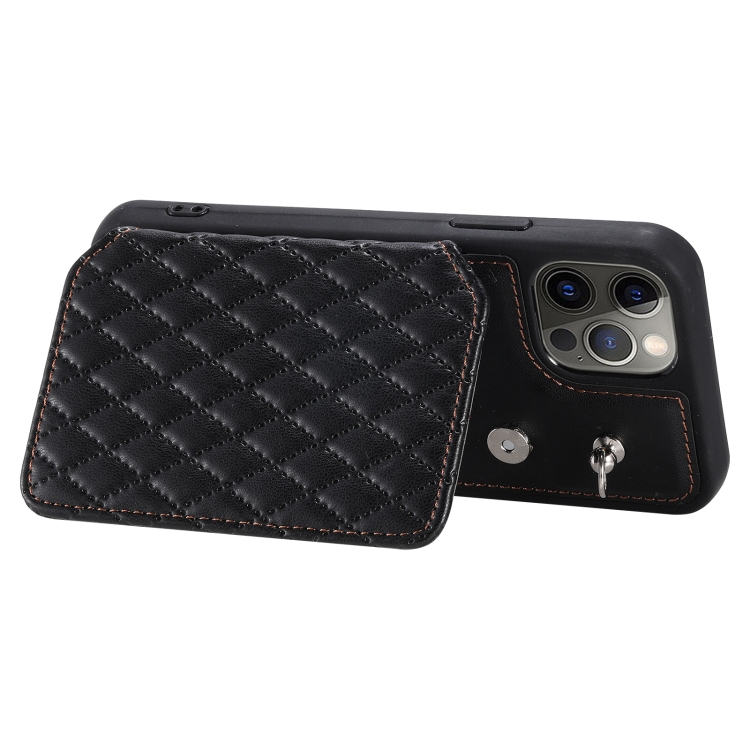 Funda para Teléfono iPhone 12 Pro Max Grid Texture Card Bag con Cordón (Negro)
