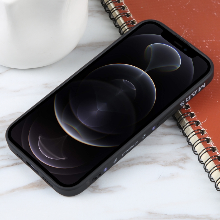 Funda de teléfono iPhone 12 Pro Max Patrón de Astronauta Borde Recto Silicona (Astronauta de Marte-Negro)