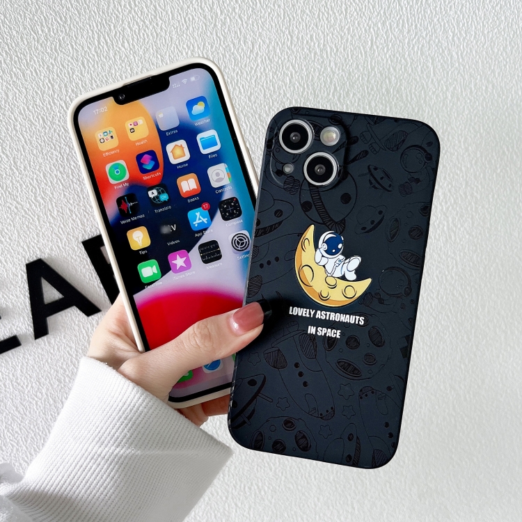 Funda de teléfono iPhone 12 Pro Max patrón de Astronauta borde recto silicona (Negro)