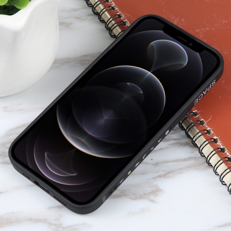 Funda de teléfono iPhone 12 Pro Max Patrón de Astronauta borde recto silicona (Planet Landing-Black)