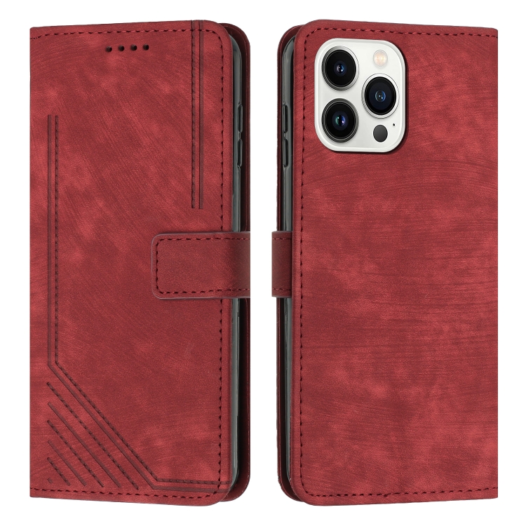 Funda para teléfono iPhone 12 Pro Max Skin Feel Stripe Pattern de cuero con cordón (Rojo)