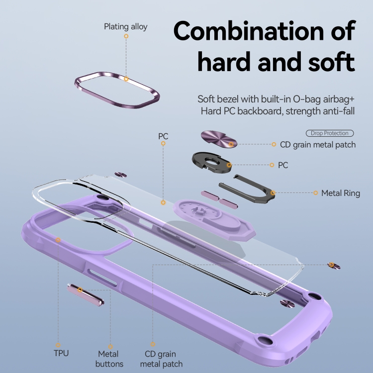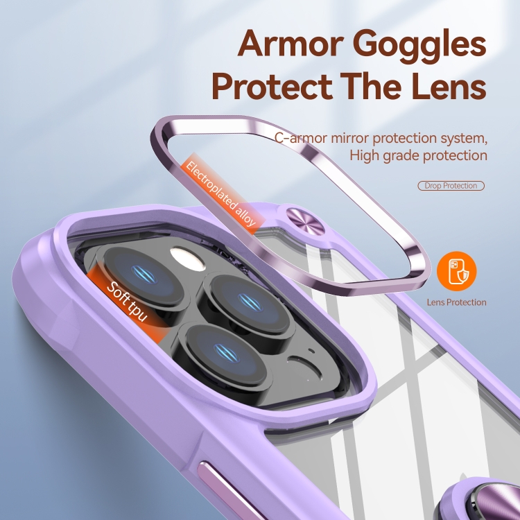Estuche para Teléfono iPhone 12 Pro Max TPU + PC con Protección de Lente y Soporte para Anillo (Púrpura)