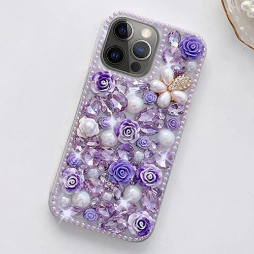 Estuche para Teléfono iPhone 12 Pro Rose con Diamante Montado a Mano (Púrpura)