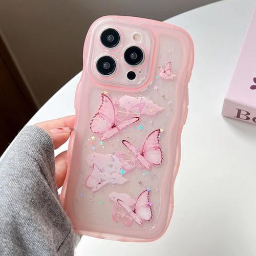 Funda para Teléfono iPhone 12 Pro Wave Edge Butterfly TPU Hybrid (Rosa)