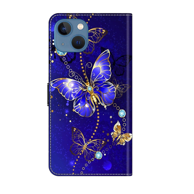 Funda Protectora de Cuero iPhone 13/14 Crystal 3D Mariposa de Diamante a Prueba de Golpes