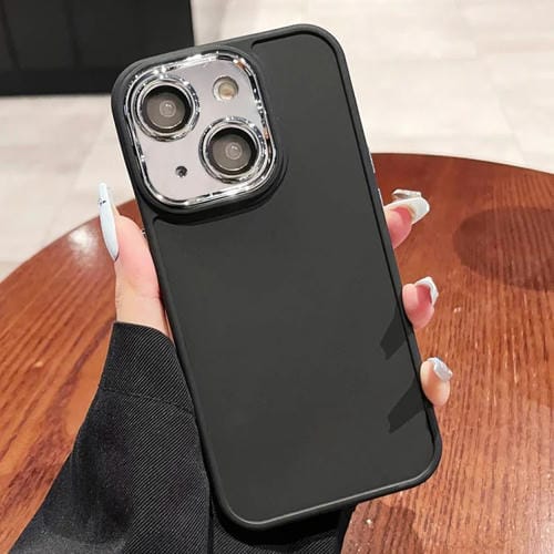 Caja de Teléfono para iPhone 13 con Marco de Lente Galvanizada y Película de Lente (Negro)