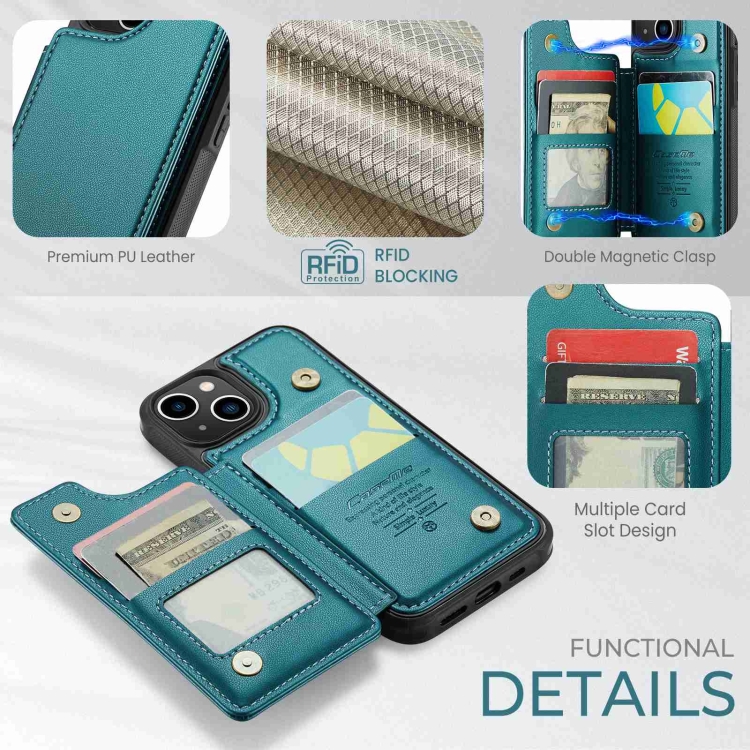 Funda para Teléfono Caseme C22 para iPhone 13 Antirrobo Rfid con Ranuras para Tarjetas (Azul Verde)