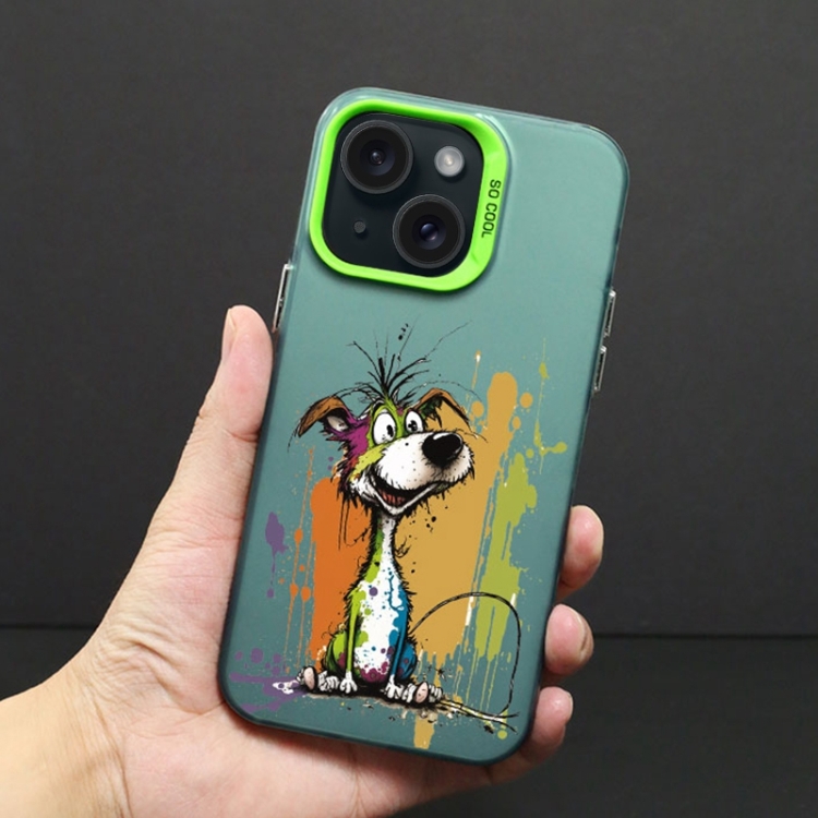 Funda para iPhone 13 Color Ink Frosted PC + Estuche TPU Perro Tonto