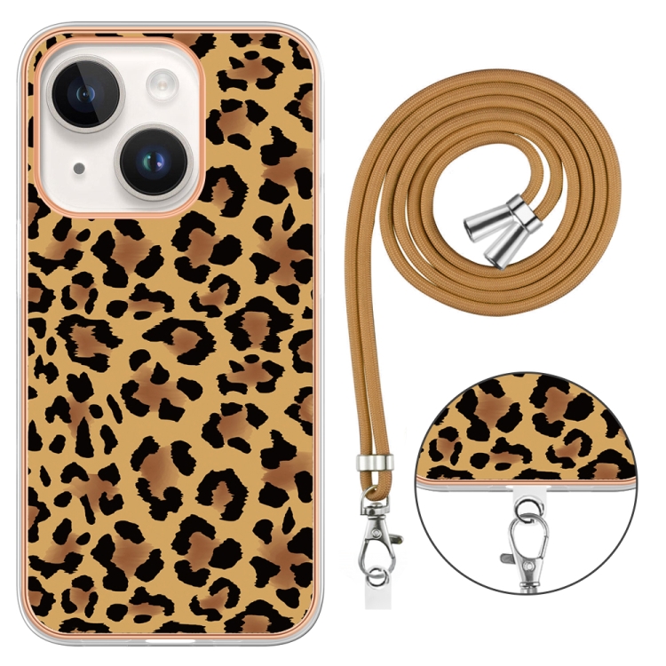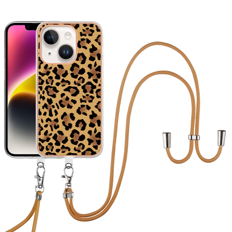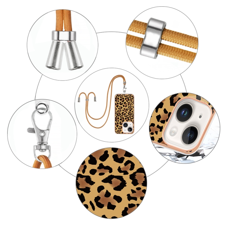 Estuche para Teléfono iPhone 13 IMD Doble Cara con Galvanoplastia y Cordón (Leopardo)