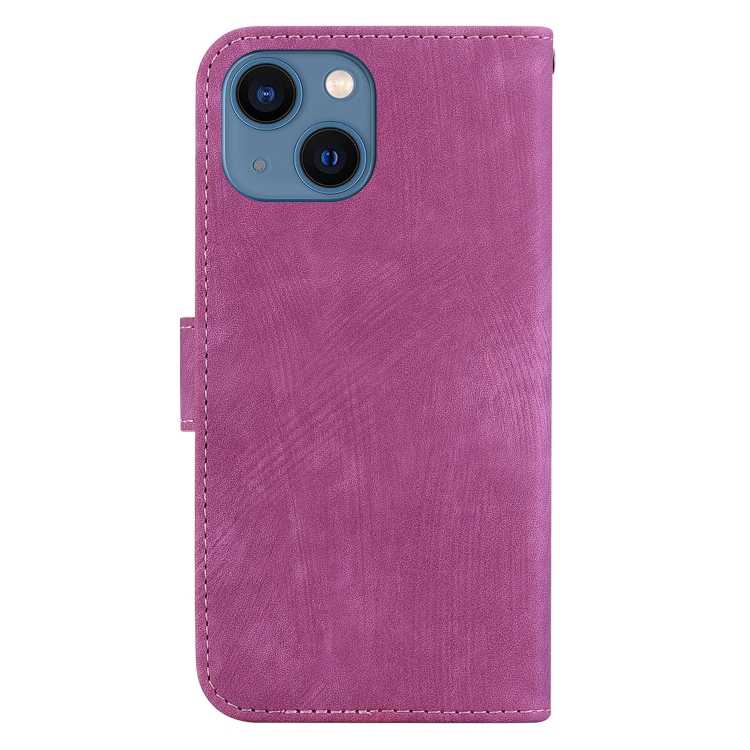 Funda de Cuero para iPhone 13 Little Tiger con Relieve (Rojo Rosa)