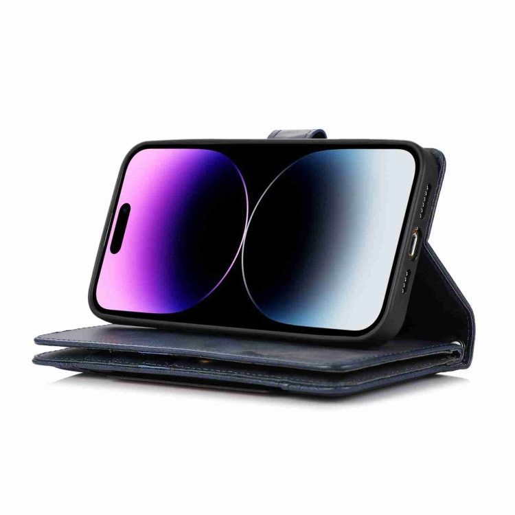 Funda de Cuero para Teléfono iPhone 13 con Ranura para Tarjeta y Pulsera (Azul)