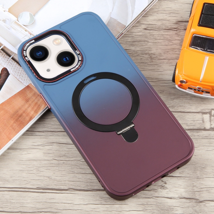 Funda para Teléfono iPhone 13 con Soporte Magsafe Gradiente Silicona Líquida (Rojo Vino Azul)