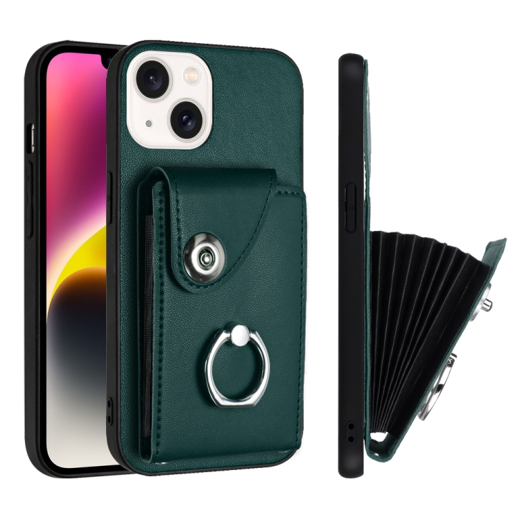 Funda para Teléfono iPhone 13 con Soporte para Anillo y Bolsa para Tarjeta de Órgano (Verde)