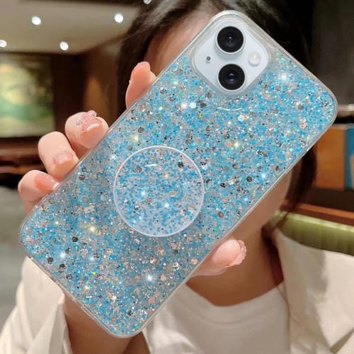 Funda para Teléfono TPU Epoxi para iPhone 13 con Soporte Redondo y Lentejuelas Estrelladas (Azul)