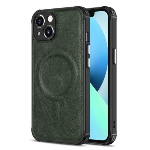 Funda de Teléfono iPhone 13 Mini Magnética Cuero de Vaca Crazy Horse (Verde Oscuro)
