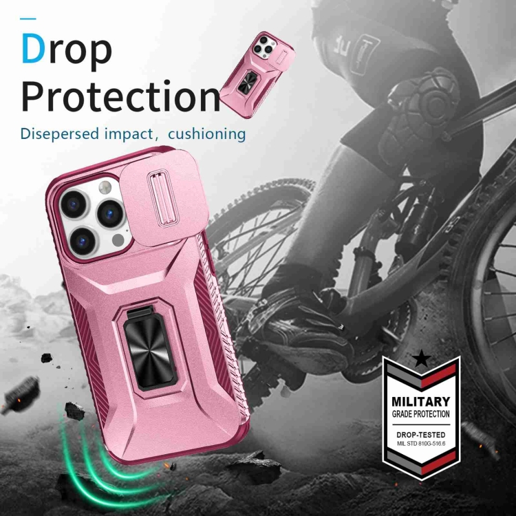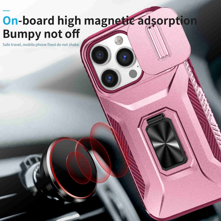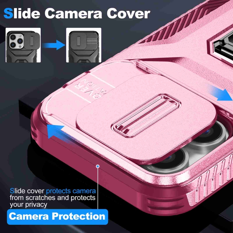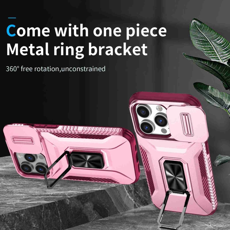 Estuche para Teléfono iPhone 13 Pro con Soporte Deslizante para Levas (Rosa + Rojo Rosa)