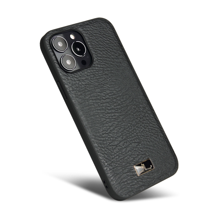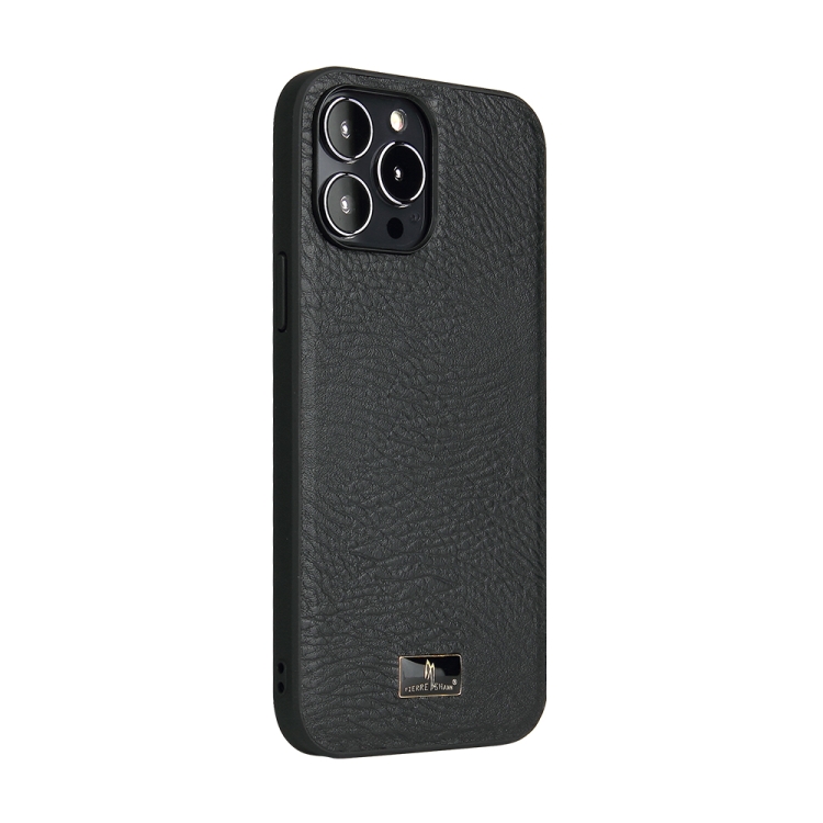 Funda para iPhone 13 Pro Fierre Shann Textura Cuero de Vaca Negro