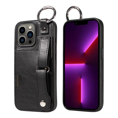 Funda para Teléfono iPhone 13 Pro con Anillo y Ranura para Tarjeta Textura Pantorrilla (Negro)