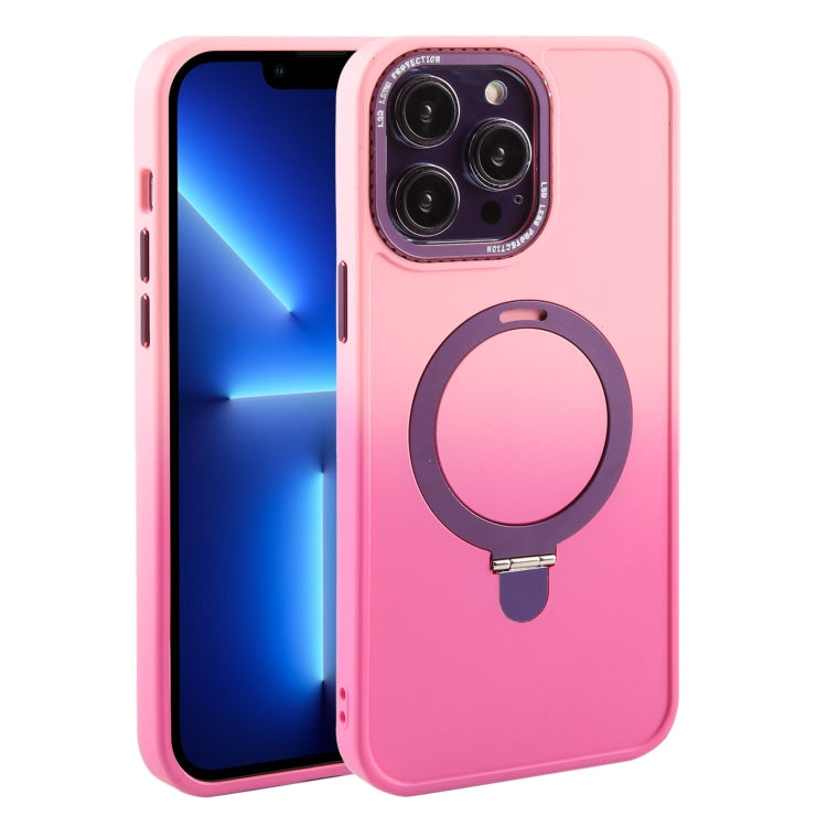 Funda para Teléfono iPhone 13 Pro con Soporte Magsafe Degradado de Silicona Líquida (Rosa Rojo)