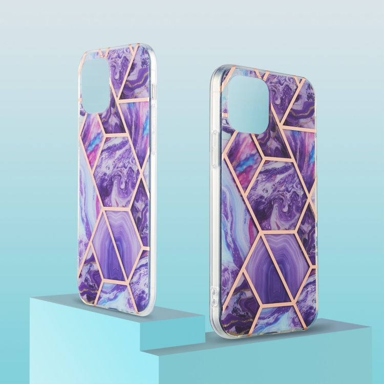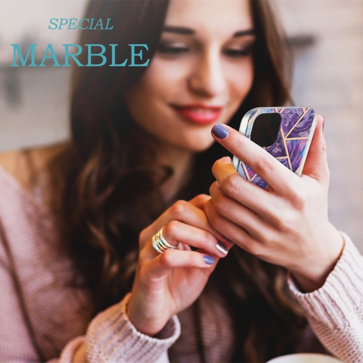 Estuche para iPhone 13 Pro Galvanoplastia Empalme Patrón Flor Mármol Doble Cara TPU (Púrpura Oscuro)