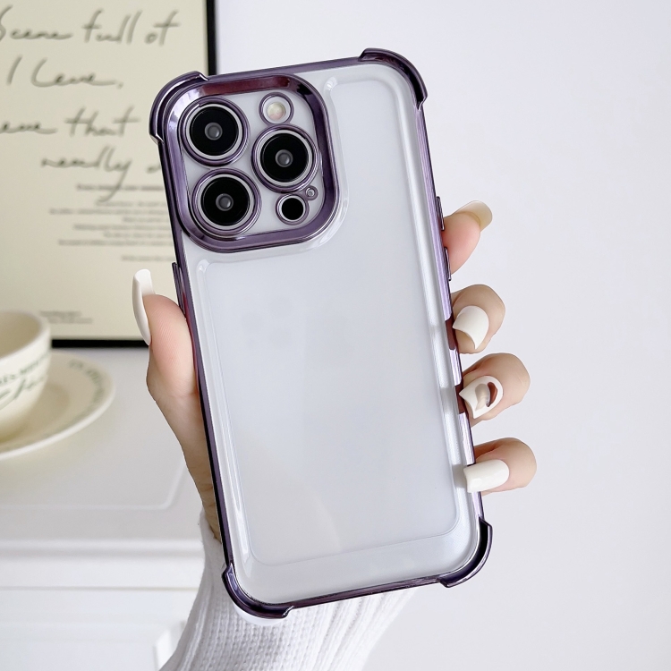 Estuche para Teléfono iPhone 13 Pro Galvanoplastia a Prueba de Golpes Cuatro Esquinas (Púrpura)