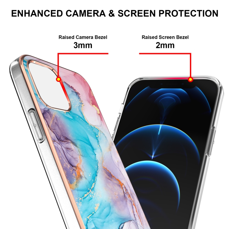 Estuche TPU para iPhone 13 Pro Galvanoplastia Patrón Imd a Prueba de Golpes (Mármol Azul de la Vía Láctea)