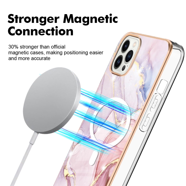 Funda de Teléfono para iPhone 13 Pro Marble Pattern Imd Magsafe TPU Doble Cara (Oro Rosa)