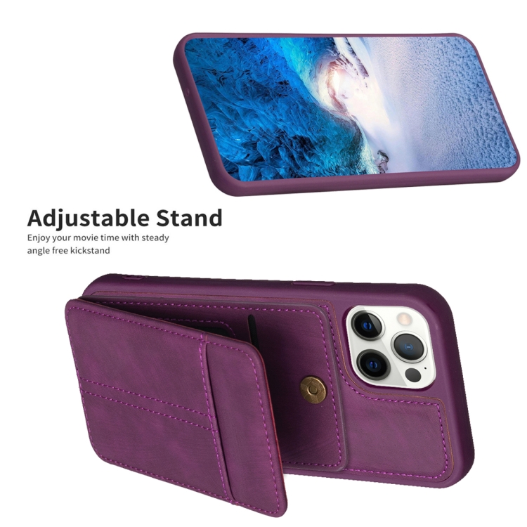Estuche para Teléfono Bf28 para iPhone 13 Pro Max con Bolsa para Tarjeta Esmerilada y Soporte (Púrpura Oscuro)