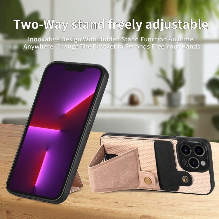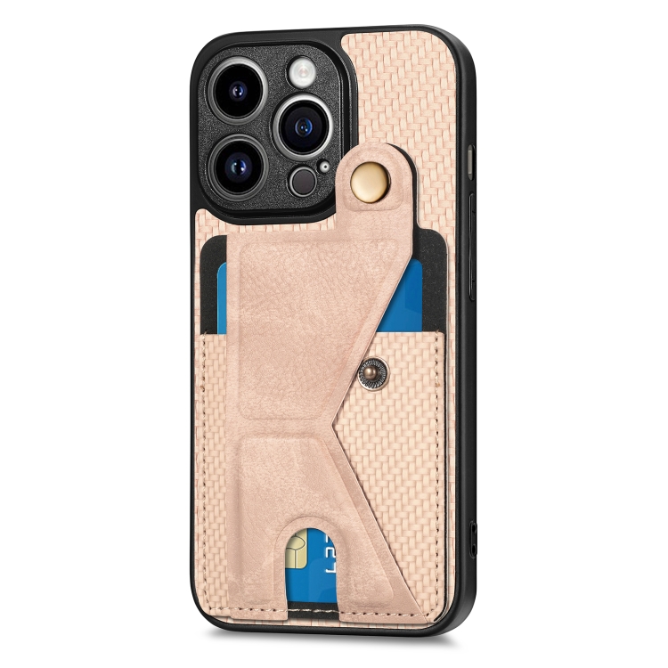 Funda para Teléfono iPhone 13 Pro Max Carbon Fiber Wallet Flip Card con Soporte en Forma de K (Caqui)