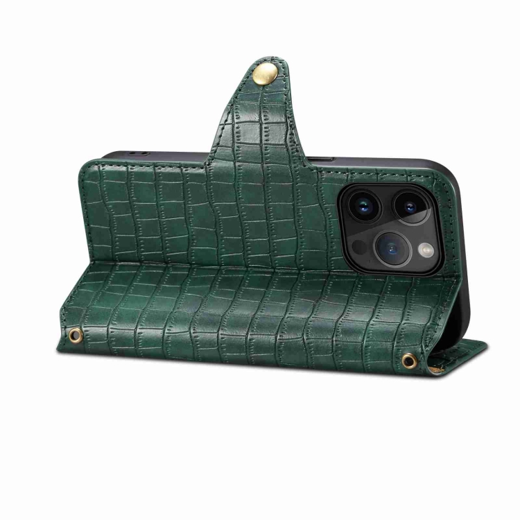 Funda para Teléfono Denior iPhone 13 Pro Max Cuero con Borde de Aceite y Textura de Cocodrilo (Verde)