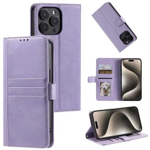 Funda para Teléfono iPhone 13 Pro Max Cuero con Billetera para 6 Tarjetas (Púrpura)