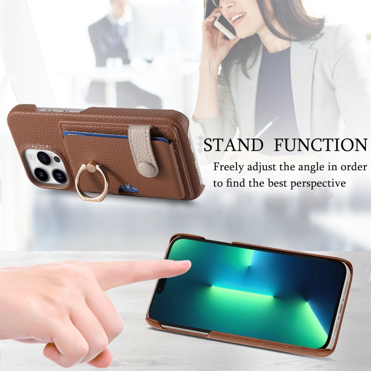 Funda para Teléfono iPhone 13 Pro Max Litchi Leather Oil Edge Ring Card (Marrón)