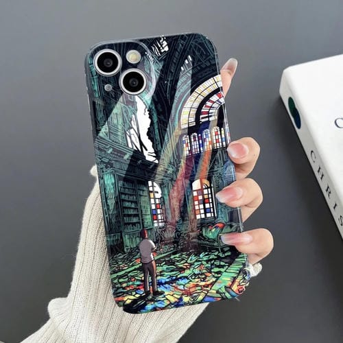 Pour iPhone 13 Pro Max Étui de téléphone PC brillant à trou précis (Coucher de soleil)