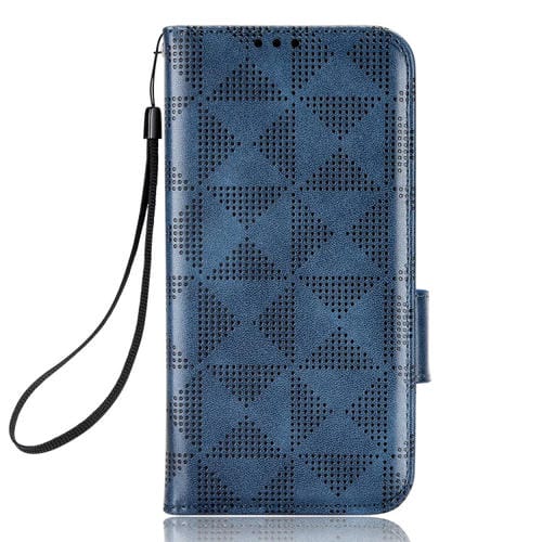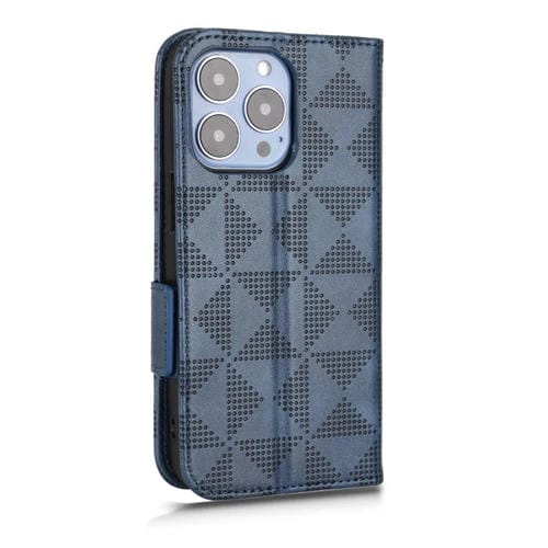 Pour iPhone 13 Pro Max Étui de téléphone en cuir triangle symétrique (bleu)