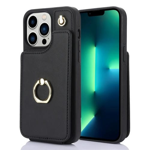 Funda para teléfono Ym005 Skin Feel Card Bag para iPhone 13 Pro Max con cordón largo (Negro)