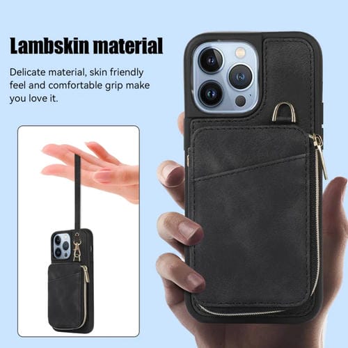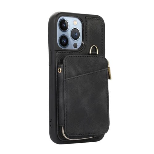 Pour iPhone 13 Pro Max Zipper Card Bag Couverture arrière Étui de téléphone (Noir)
