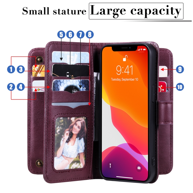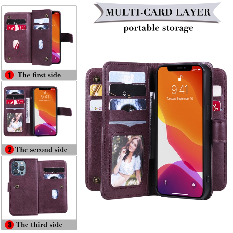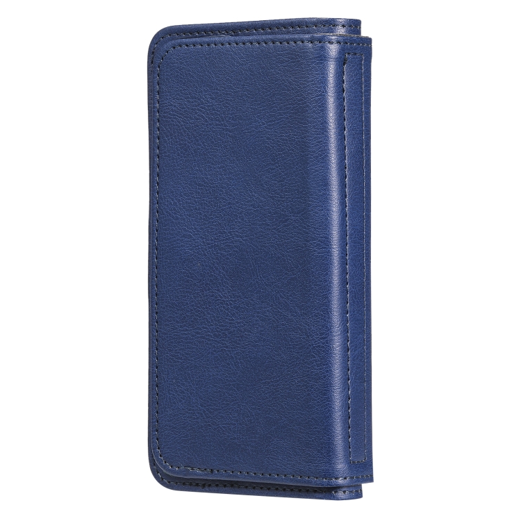 Funda para iPhone 13 Pro Multifuncional Hebilla Magnética de Cobre Cuero Azul Oscuro con 10 Ranuras