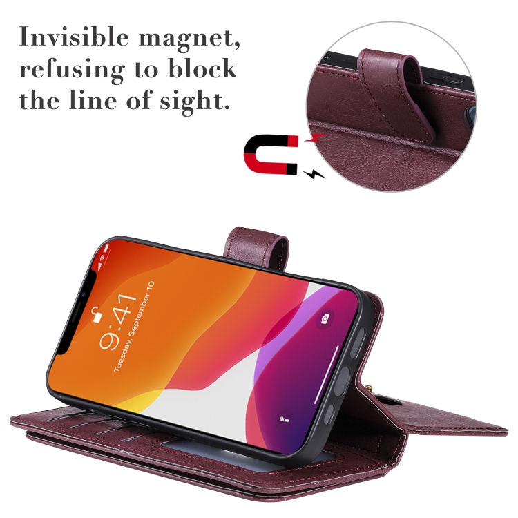 Funda para iPhone 13 Pro Multifuncional Hebilla Magnética de Cobre con Tapa Horizontal y 10 Ranuras para Tarjetas (Púrpura)