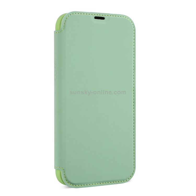 Funda para iPhone 13 Pro Skin Feel Cuero de Pu con Tapa Horizontal Soporte y Ranura para Tarjeta (Verde Té)