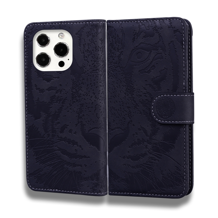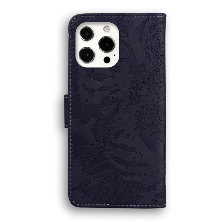 Funda de Cuero iPhone 13 Pro Tiger Embossing con Tapa Horizontal Soporte Ranuras para Tarjetas Billetera (Negro)