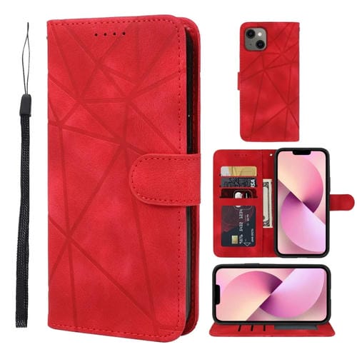 Funda para Teléfono iPhone 13 Skin Feel Cuero Líneas Geométricas (Rojo)