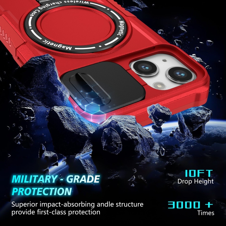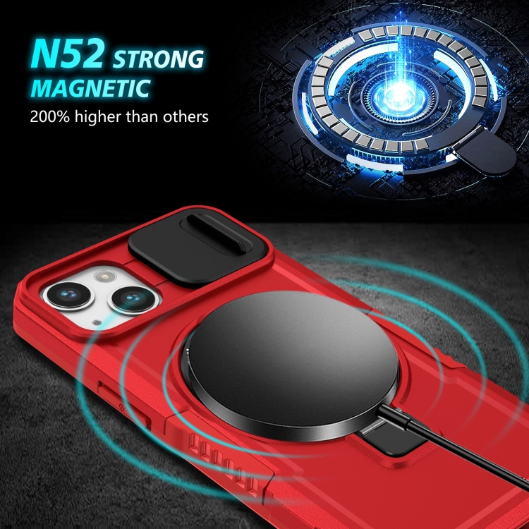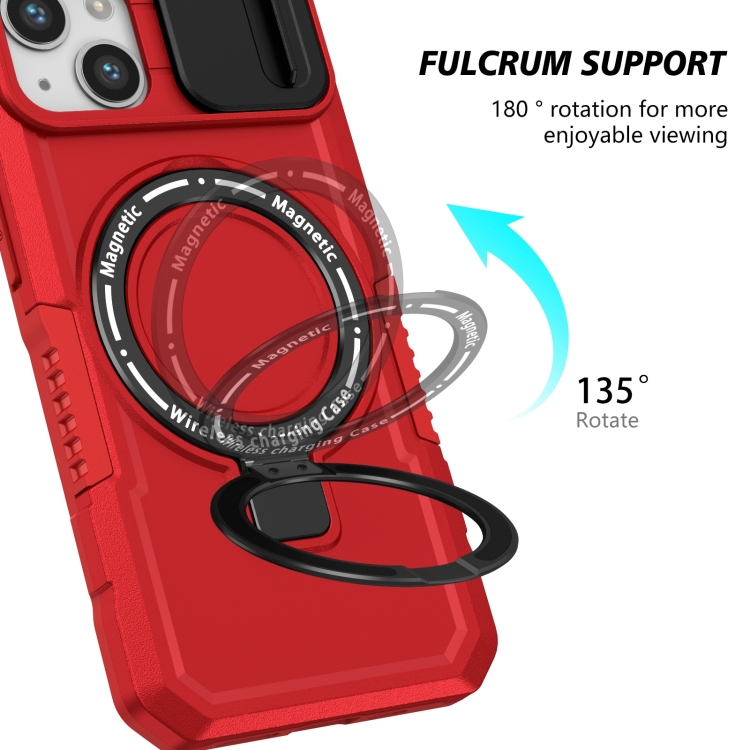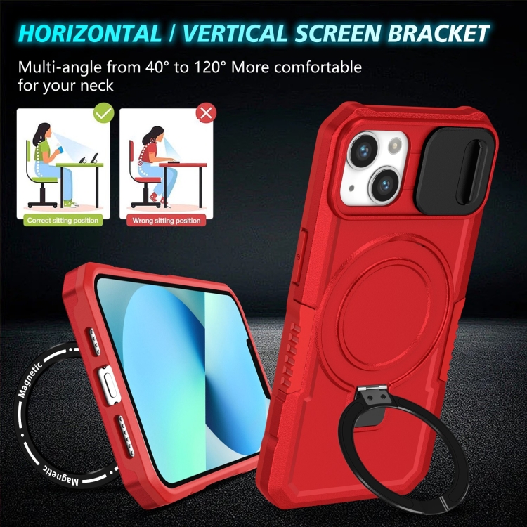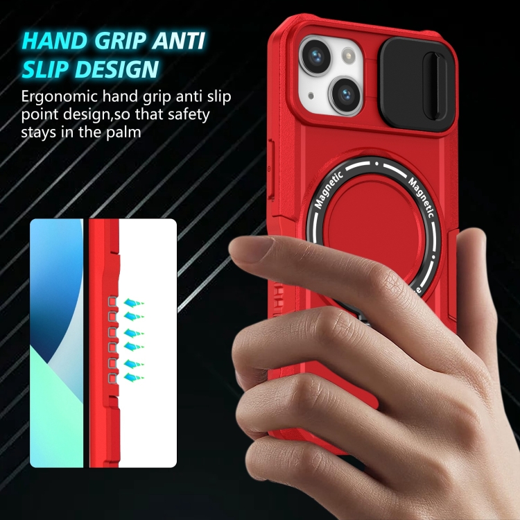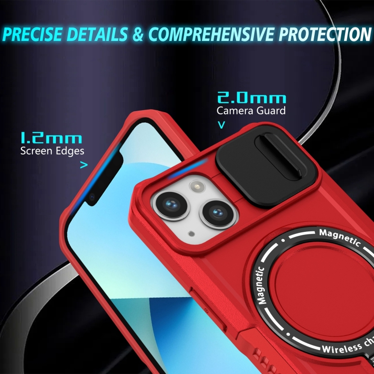 Funda para teléfono iPhone 13 Sliding Camshield Magsafe Holder TPU Hybrid (Rojo)