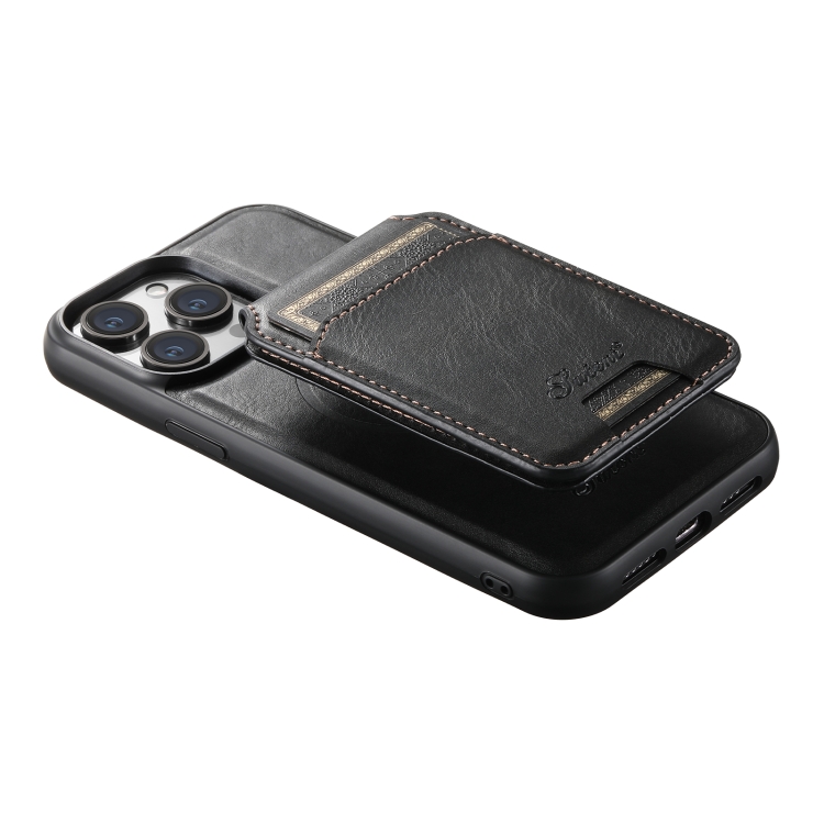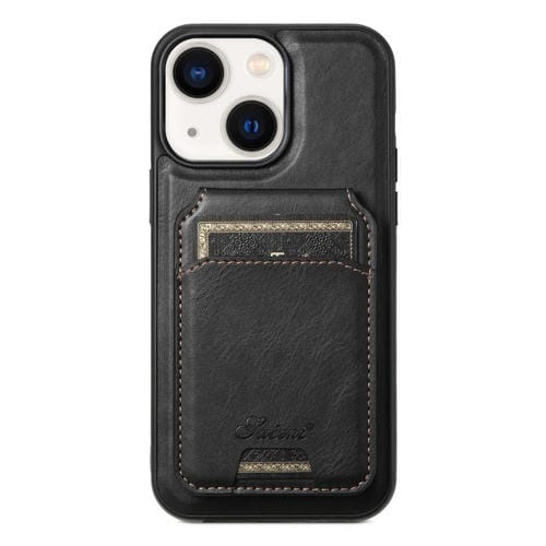 Funda para iPhone 13 Suteni H15 Magsafe Oil Eax Cuero con Billetera Desmontable (Negro)